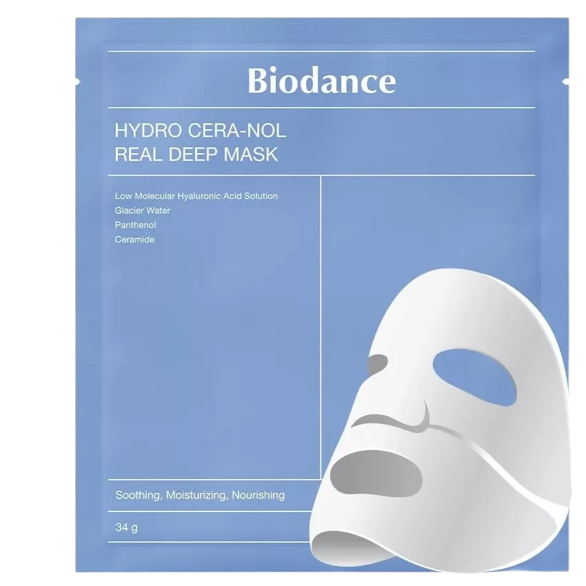 Biodance Hydro Cera-Nol Real Deep Sheet Mask is a hydrogel mask with ceramides and glacial water that soothes, hydrates, and refreshes. Perfect for dry or sensitive skin.