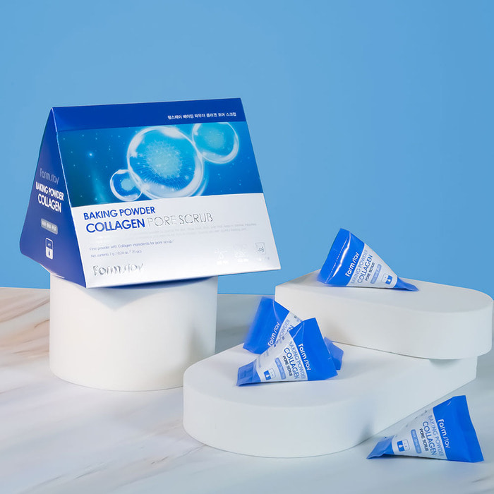 FarmStay Collagen Baking Powder Pore Scrub is an exfoliating Korean scrub enriched with baking powder and collagen to deeply cleanse pores, smooth skin, and boost elasticity. It removes impurities and dead cells, leaving the skin refreshed and soft.